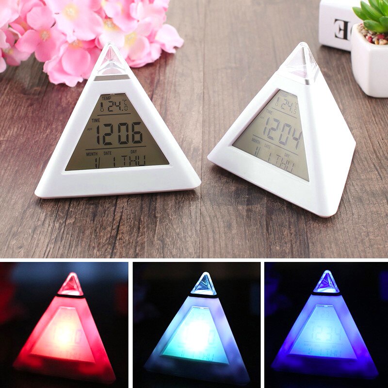 Un Diseño Único: Despertador digital pirámide con luces colores que Captura Miradas