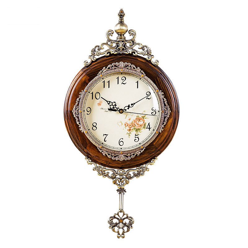 Cada elemento de este reloj ha sido cuidadosamente diseñado para ofrecerte una pieza única. La esfera, con sus números arábigos claramente legibles y detalles florales sutiles, evoca un estilo vintage encantador. Las manecillas ornamentadas no solo cumplen su función, sino que también contribuyen a la estética general del reloj. Observa el intrincado trabajo del metal en la parte superior y en el péndulo, que añade un aire de lujo y artesanía. Es la combinación perfecta de materiales nobles y diseño exquisito lo que hace de este reloj una verdadera joya para tu hogar.