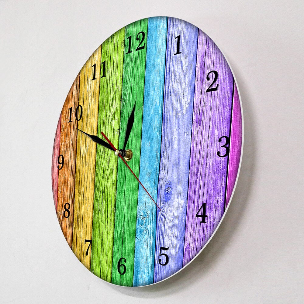 Tu hogar nunca había sido tan colorido con el Reloj de pared de madera arcoíris.