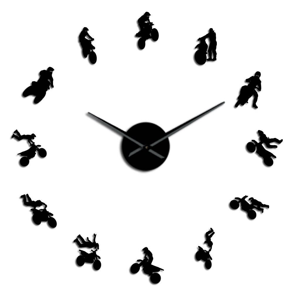 Imagina tu pared principal transformándose en una declaración audaz de estilo y pasión por las motos. Con nuestro reloj de pared gigante 3D motos, no solo estás comprando un reloj; estás adquiriendo una pieza de arte funcional que captura la esencia de la velocidad y la libertad. Diseñado para los amantes de las dos ruedas, este reloj adhesivo de gran tamaño es la manera perfecta de expresar tu personalidad y añadir un toque moderno y dinámico a cualquier habitación. Sus figuras de motos en 3D crean un efecto visual profundo y envolvente, haciendo que la hora sea mucho más interesante de mirar.