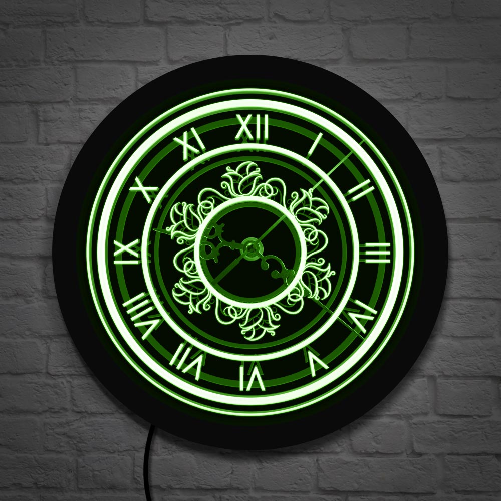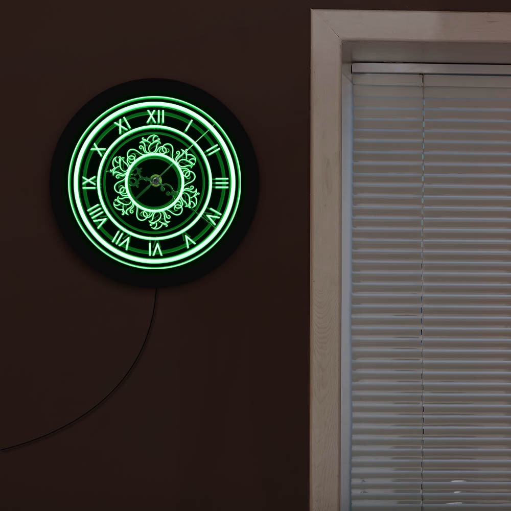 Este reloj no solo te dirá la hora con sus números romanos clásicos y su elegante diseño de agujas, sino que también elevará la estética de tu espacio. Su luz LED, además de ser energéticamente eficiente, ofrece una iluminación suave que no cansa la vista. La calidad de los materiales asegura una durabilidad excepcional, haciendo de este reloj una inversión inteligente para aquellos que buscan combinar belleza y practicidad en su decoración.
